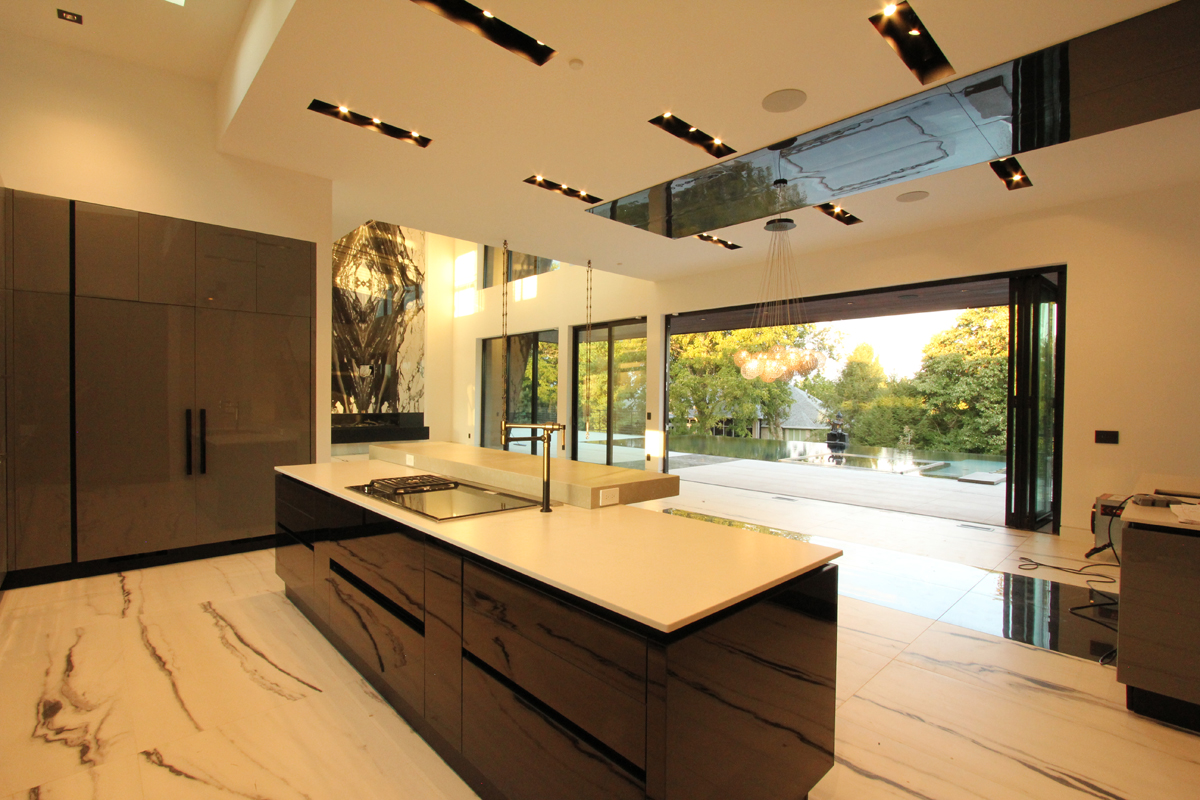 Another difficulty the team encountered when creating a seamless pool design was ensuring the pool height was even with the main floor of the home. “In order to accomplish this, the team developed a process including engineered fill with more than 100 loads of compact, testing every six inches to maintain structural integrity,” explained Kennaw.