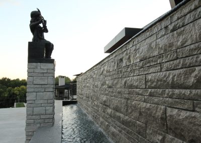 The pool was designed specifically for the homeowners, who wanted a unique feature to complete their new build. Architect Winn Wittman laid out the basic design of the pool and deck area but relied heavily on the pool design expertise of contractor Aaron King to create something truly special. To create a uniquely seamless and integrated appearance, a 15-foot by 4-foot acrylic wall was added, splitting a staircase. “One side of the wall opens to the pool and the other feeds into the lower patios to create a backyard oasis,” says Mike Kennaw, the Fox Blocks representative for the project. “This design was further completed with a built-in hot tub that sits inside of the pool, giving the infinity pool the appearance of an endless flow. The biggest challenge on this project was finding an easy access point for servicing the pool.”