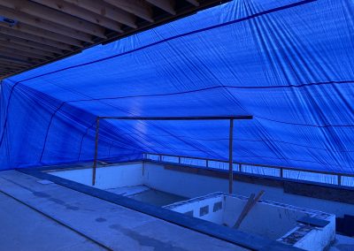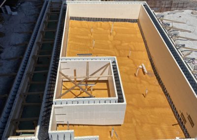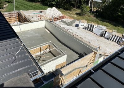 The use of ICF made it possible to place the pool plumbing and electrical in a discreet crawl space below the gutter collection area. The construction of this pool took place during the Covid pandemic, so sourcing was difficult for many items. The engineer specifically required 12-inch core forms in many sections of the pool. Fortunately, Fox Blocks was stocked and readily available, which helped keep the project on track to finish as scheduled.