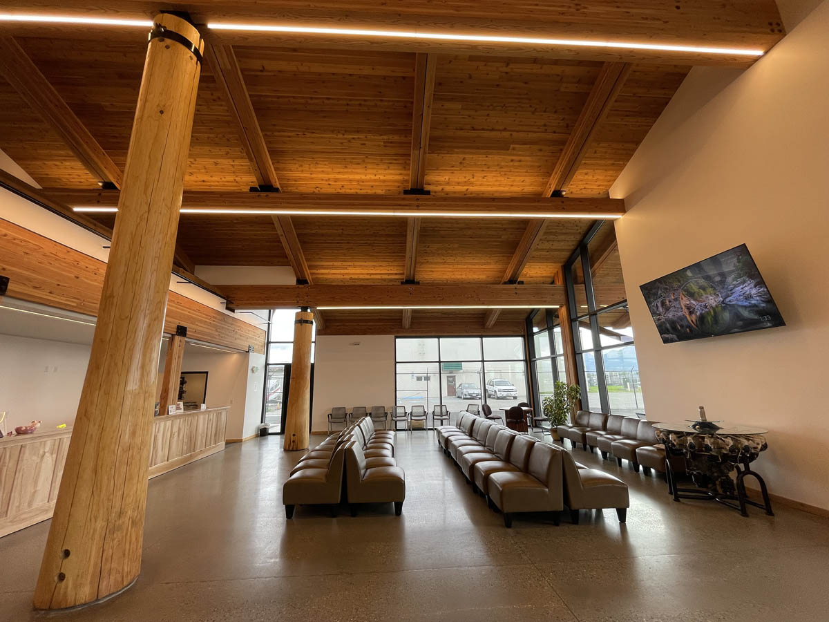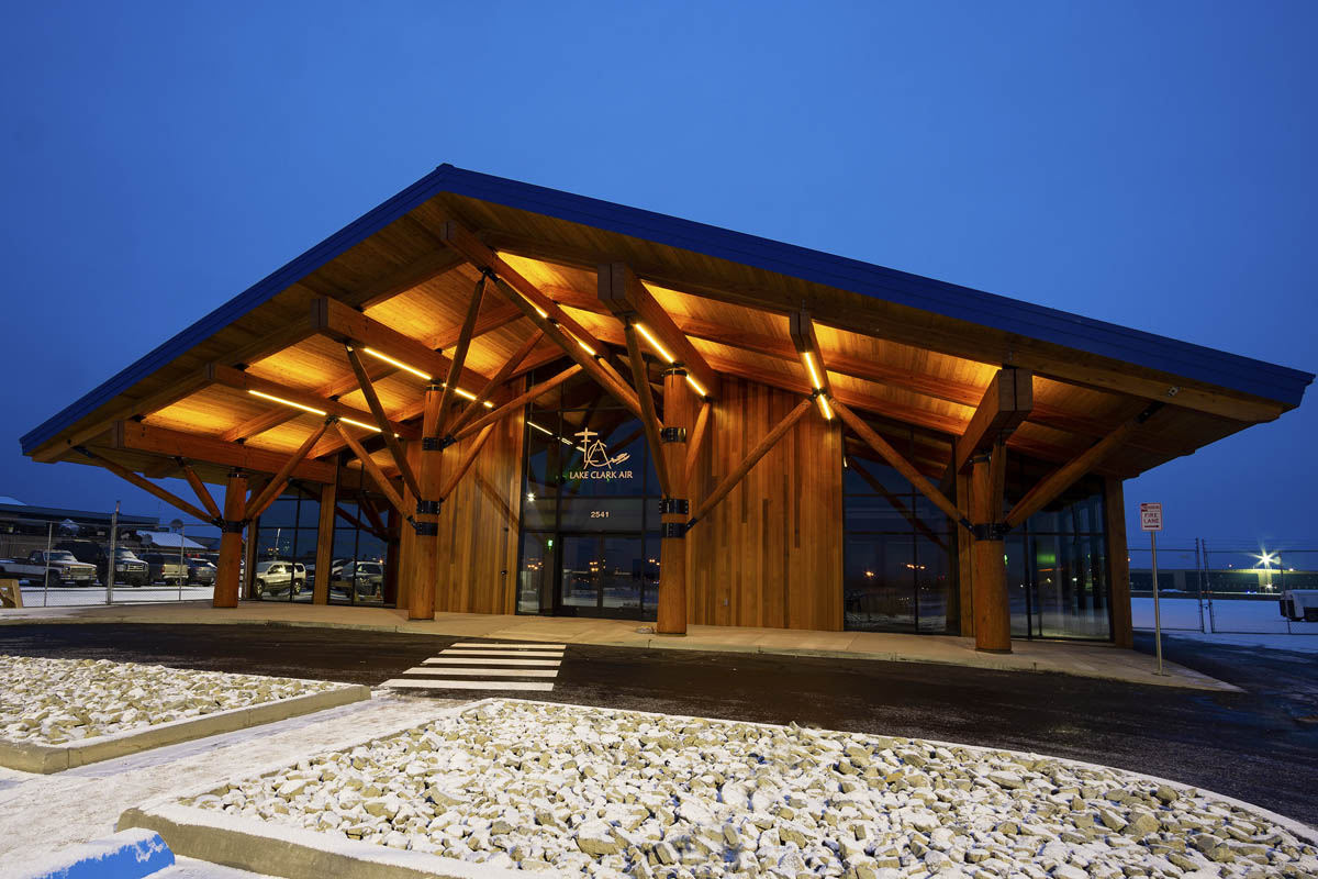 Several very different needs are seamlessly accommodated in the same building, including aircraft arriving to and from bush Alaska with passengers and all types of freight and hunting and fishing harvests. It’s also an aesthetically-pleasing and appropriate introduction of tourists to the Lake Clark region, which serves as the gateway to remote Lake Clark National Park.