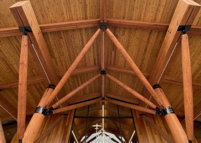 The strut-like architectural “foliage” of the canopy came from 150-year-old, sustainably-managed white pine from central Wisconsin’s Menominee Indian Reservation.
