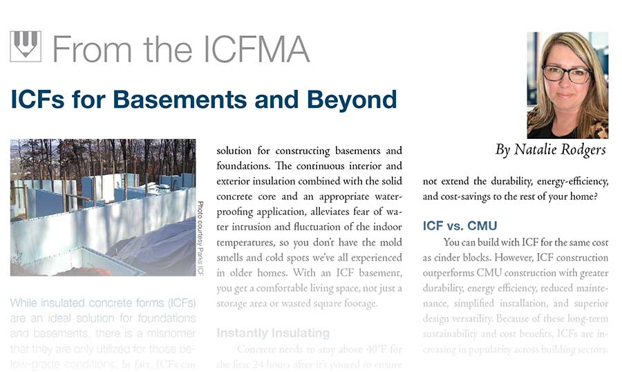 When planning for your next build, think ICFs for their structural durability, versatility, and energy efficiency. Plus, don’t forget ICFs can be used above-grade all the way to the roof.