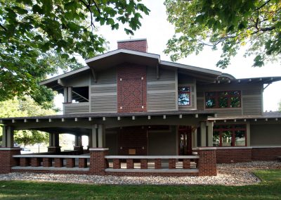 - Steel tube carries the eyebrow roof load between main and upper-level