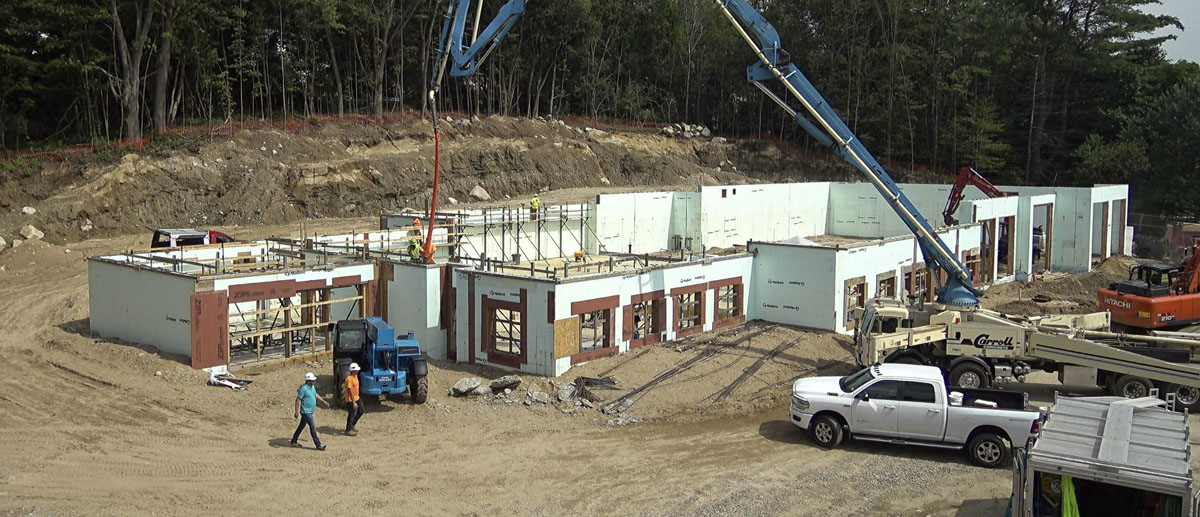 Dave Groen of Groen Construction served as both general contractor and ICF installer for the project, bringing more than 20 years of ICF experience to the build. The 57-week construction timeline included only 68 days of ICF installation. Despite a challenging winter in the Lakes Region of New Hampshire, the project was completed within budget and turned over to the town in time for the open house that was scheduled in July 2024.